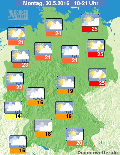 Vor allem in der Nordwesthälfte kann sich in den späteren Nachmittags- und Abendstunden auch immer wieder mal die Sonne zeigen. Die frühen Abendtemperaturen liegen bei kühlen 14 Grad im Saarland und um 25 Grad entlang der Oder.