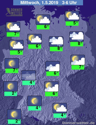 Während der zweiten Nachthälfte fällt im Nordosten regional noch etwas Regen. Sonst präsentiert sich der Himmel teils wechselnd bewölkt, teils sternenklar. Speziell im Rhein-Main-Gebiet kann sich Nebel bilden.