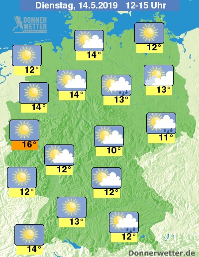 Die Temperaturen liegen meist zwischen 10 und 14 Grad, nur im Westen wird es etwas wärmer.
