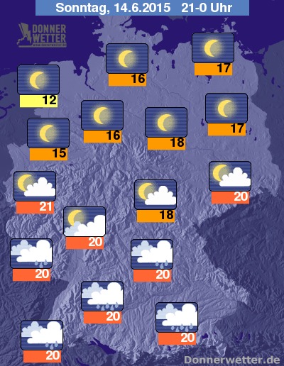 Zweigeteilt geht es dann in die späten Abendstunden. Zeigt sich in der Nordhälfte der Himmel überwiegend klar, sind im Süden bei bedecktem Himmel immer wieder Schauer zu erwarten.