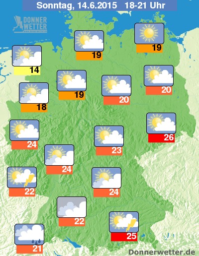 Die Temperaturen liegen bei kühlen 14 Grad auf den Ostfriesischen Inseln und um 26 Grad im Süden Sachsens.