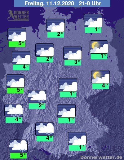 Am Abend fällt im Südwesten zeitweise Niederschlag. Aus den Flocken werden jedoch immer häufiger Tropfen. Sonst bleibt es meistens niederschlagsfrei, aber trübe. Lediglich über Teilen von Sachsen und Brandenburg klart der Himmel etwas auf und lässt den Blick auf einige Sterne zu.