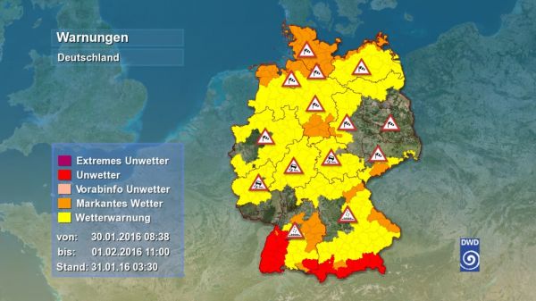 Für den Schwarzwald und den Alpenraum bestehen Unwetterwarnungen:
