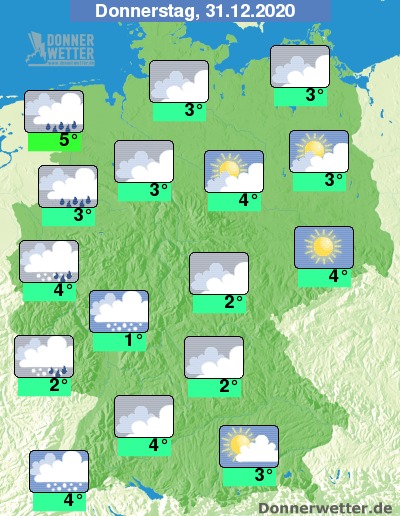 Am heutigen Silvester dominieren meisten die Wolken. Nach Osten hin gibt es jedoch auch einige Aufheiterungen. In Sachsen scheint die Sonne auch für längere Zeit. Im Westen fällt zeitweise Regen ode Schneeregen, in höheren Lagen auch Schnee mit der Gefahr von Glätte.
