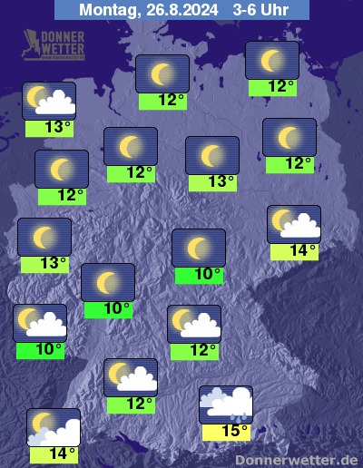 Die Temperaturen gehen in den Frühstunden zurück auf Werte um 15 bis 10 Grad.