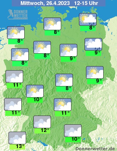 Heute Nachmittag ist es mehrheitlich stark, gebietsweise auch aufgelockert bewölkt. Im Nordosten bilden sich vielerorts Schauer, sonst bleibt es aber weitgehend trocken. Die Temperatur liegt bei 8 Grad in Rostock und bis 13 Grad in Freiburg.
