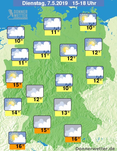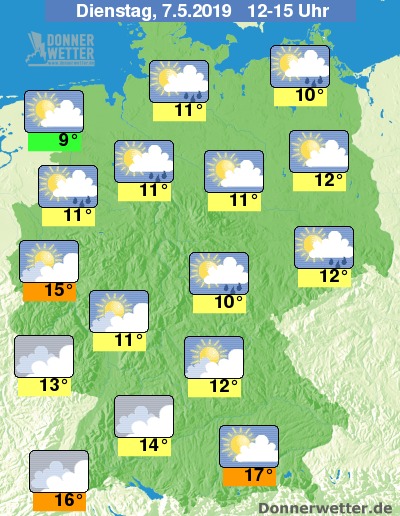 Die Temperaturen liegen allgemein zwischen 9 und 13 Grad. Im Süden und Westen können stellenweise auch zwischen 14 und 17 Grad angestrebt werden.