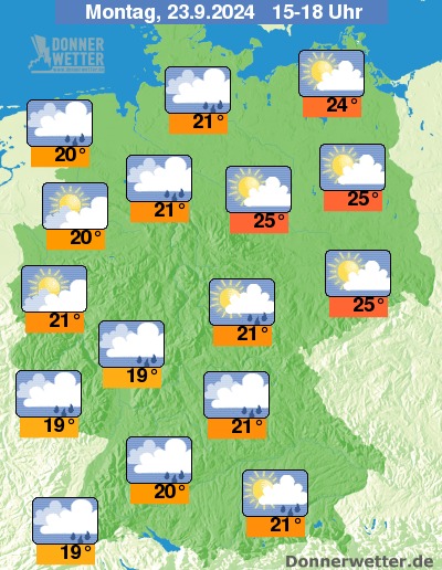 Am Montagnachmittag zeigt sich der Himmel über weiten Landesteilen wechselnd oder stark bewölkt, dabei fällt von Südwesten teils anhaltender Regen, zum Abend hin auch den Süden Deutschlands erreichend. Im Nordosten und Osten startet die neue Woche zunächst noch heiter oder sonnig und es bleibt trocken.
