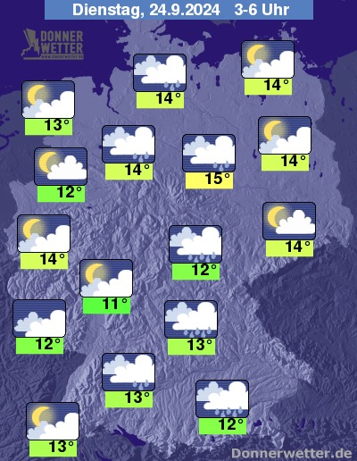 Die Temperaturen gehen in den frühen Morgenstunden zurück auf Werte um 15 bis 11 Grad.