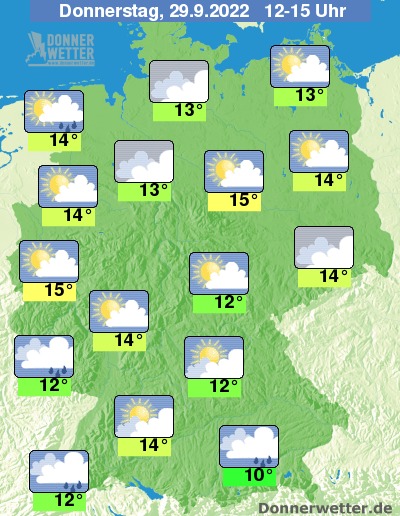 Heute Nachmittag ist es über der Nordhälfte es Landes teils heiter, teils ziehen dichte Wolken durch, dazu sind nur selten Schauer möglich. Im Süden bleibt es dagegen meist bedeckt und es bilden sich gebietsweise Schauer. Die Temperatur liegt bei 10 Grad in Augsburg und 15 Grad in Magdeburg.