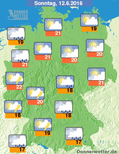 Wechselhaftes Wetter begleitet den Süden und Westen des Landes dann leider auch am Spieltag der deutschen Nationalmannschaft. Schauer sind am Sonntag ebenso zu erwarten wie regionale Gewitter und ab und an auch mal ein wenig Sonne. Bessere Aussichten für das Public Viewing bestehen dagegen im Norden und Osten: Hier bleibt es bei heiterem oder bewölktem Himmel meist trocken.