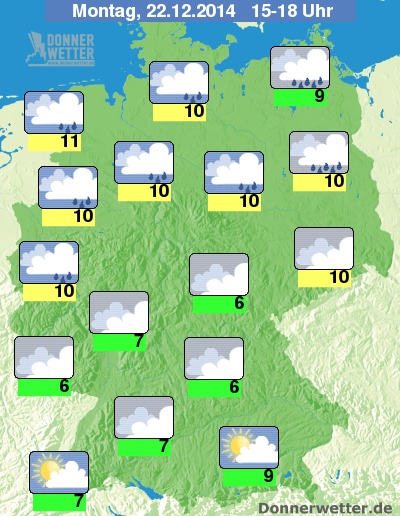 Heute Abend bleibt die Wolkendecke überwiegend verschlossen, nur im Süden kann es auch häufiger auflockern, dabei bleibt es hier trocken. Besonders im Norden des Landes fällt ein teils kräftiger Regen, aber auch in der Mitte der Bundesrepublik fällt zeitweise Regen. Mit Ausnahme des Südens weht noch ein frischer bis starker, an der See auch ein stürmischer Wind. Die Abendtemperatur liegt bei 10 Grad in der Norddeutschen Tiefebene und um 4 Grad im Alpenvorland.