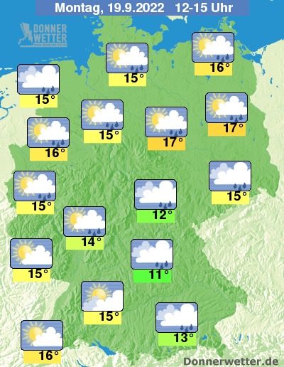 Heute Nachmittag bleibt es im Südwesten bei verbreitet nur lockerer bis wechselnder Bewölkung weitgehend trocken. Im übrigen Bundesgebiet ist es jedoch häufig stark, teils aufgelockert bewölkt und es können sich wiederholt Schauer, örtlich auch Gewitter bilden. Die Temperatur liegt bei 11 Grad in Mittelfranken und 17 Grad in der Magdeburger Börde.
