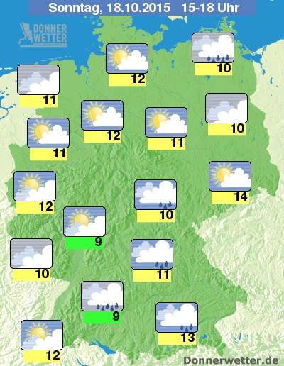 Heute Nachmittag kann sich in einem breiten Streifen von NRW bis nach Sachsen häufiger die Sonne zeigen, hier bleibt es auch meist trocken. Weiter nach Norden hin ist es gebietsweise auch aufgelockert, meist jedoch stark bewölkt und es zieht im weiteren Verlauf von Norden her auch Regen auf. Südlich des etwas freundlicheren Streifens bleibt der Himmel weitgehend stark bewölkt und es fällt zeitweise Regen. Die Temperatur steigt auf 9 Grad im Kraichgau und bis 14 Grad in Dresden.