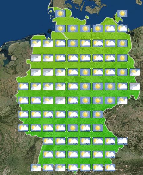 Heute Nachmittag ist es häufig heiter oder wechselnd bewölkt, jedoch ziehen hier und da auch mal dichte Wolken durch, dabei ist mit einzelnen Schauern zu rechnen. Meist heiter bis sonnig und trocken zeigt sich der Nordosten des Landes. Die Temperatur liegt bei 14 Grad in München und etwa 19 Grad in Berlin.