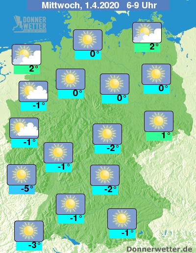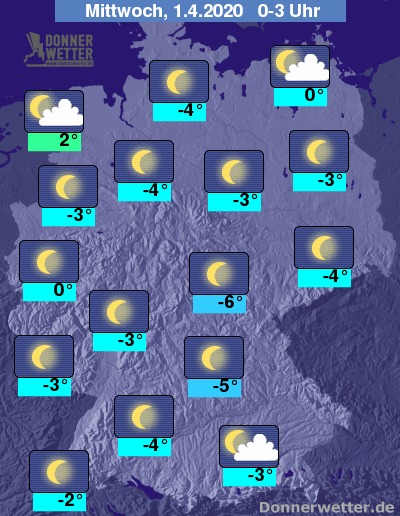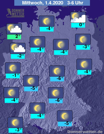Die Temperaturen sinken in der Nacht auf Werte um 2 Grad auf den Nordfriesischen Inseln und -6 Grad im Fichtelgebirge.