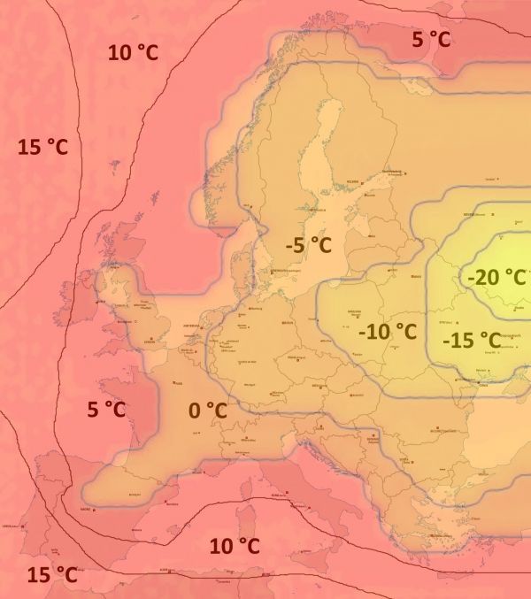 Die Karte zeigt die europaweiten Tagestiefsttemperaturen am morgigen Mittwoch: