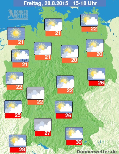 Heute Nachmittag halten sich vor allem im Südwesten von Deutschland noch oft dichte Wolken, dazu fällt aber nur noch selten Regen, auch im westlichen Niedersachsen sind gebietsweise dichte Wolken möglich, die hier einzelne Schauer bringen können. Im übrigen Bundesgebiet gibt es einen Mix aus Sonne und meist lockeren bis aufgelockerten Wolken, dabei bleibt es weitgehend trocken. Vor allem in den Küstenregionen, aber auch in Süddeutschland zeigt sich der Himmel oft sogar sonnig. Die Temperatur steigt auf 20 Grad in Dessau und bis auf heiße 30 Grad in München.
