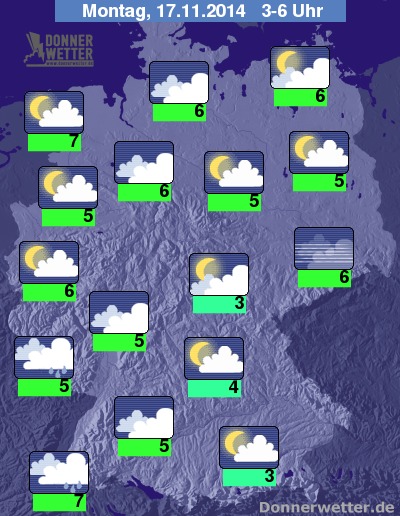 In der kommenden Nacht klingen die Niederschläge im Norden weitgehend ab und auch hier lockert die Bewölkung nach und nach auf. Dagegen werden die Wolken im Südwesten Deutschlands zunehmend dichter und gegen Morgen kann es hier und da regnen. In den übrigen Regionen bleibt es bei häufig lockerer, teils auch starker Bewölkung trocken. Stellenweise bildet sich Nebel oder Hochnebel. Die Temperatur sinkt auf 7 Grad in Freiburg und bis 3 Grad im Raum München.