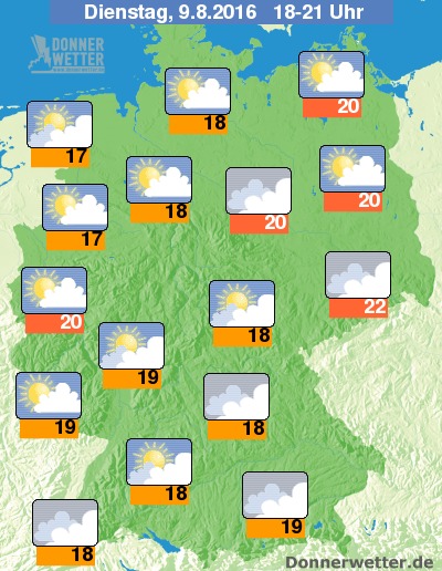 Heute Abend halten sich vor allem im Süden und Osten meist dichte Wolken, teils lockert es aber auch etwas auf, dazu sind anfangs vereinzelte Schauer möglich. Über der Nordwesthälfte gibt es meist einen Mix aus Sonnenschein und einigen, meist lockeren Wolken, dazu bleibt es weitgehend trocken. Die Temperatur steigt auf 17 Grad entlang der Ems und bis 22 Grad im Leipziger Land.