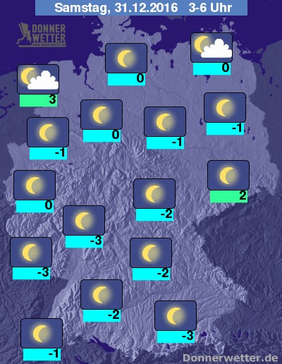 In der Nacht zum Samstag bleibt es über der Republik weitestgehend sternenklar, nur in den küstennahen Gebieten ziehen auch lockere Wolkenfelder durch. Es bleibt trocken bei Tiefstwerten von 3 Grad in Emden und bis -3 Grad am Odenwald.