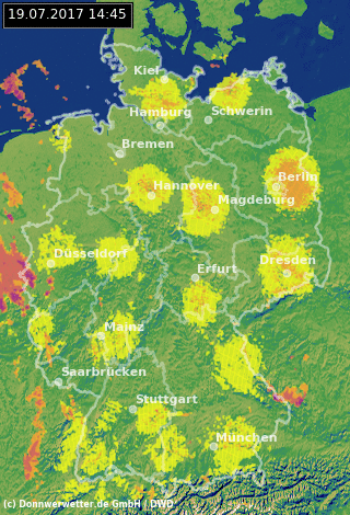 Größere Gewitterzellen ziehen aktuell vor allem über NRW hinweg und bewegen sich im weiteren Nachmittagsverlauf in nordöstliche Richtung. Neben teils kräftigen Gewittern muss in den nächsten Stunden auch regional mit Starkregen, Hagel und Sturmböen gerechnet werden.