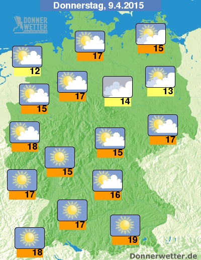 Heute ist es insbesondere über der Südhälfte Deutschlands verbreitet sonnig und es ziehen nur gelegentlich mal ein paar lockere Wolken durch. Weiter nach Norden werden Wolken häufiger, aber auch hier zeigt sich zwischen den Wolken immer wieder die Sonne. Es bleibt landesweit trocken bei Höchstwerten zwischen 12 Grad an der Nordsee und sehr milden 19 Grad im Raum München.