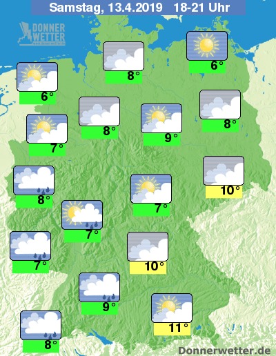 Heute Abend bleibt es meist bei dem stark bewölktem und nur hin und wieder auch locker bewölktem Himmel. Über der Südwesthälfte fällt gebietsweise Regen, teils auch mit Flocken oder Graupel, im Norden und Osten bleibt es hingegen meist trocken. Die Temperaturspanne liegt bei nur 6 bis 11 Grad.