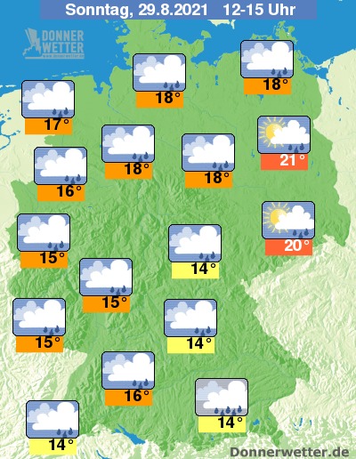 Heute Abend ziehen weiterhin meist viele und oft dichte Wolken durch, es bilden sich verbreitet Schauer, örtlich sind auch Gewitter dabei. Dazwischen kann sich auch hier und da die Sonne zeigen. Die Temperatur liegt bei kühlen 13 Grad in Berchtesgaden und bis 21 Grad in Berlin.