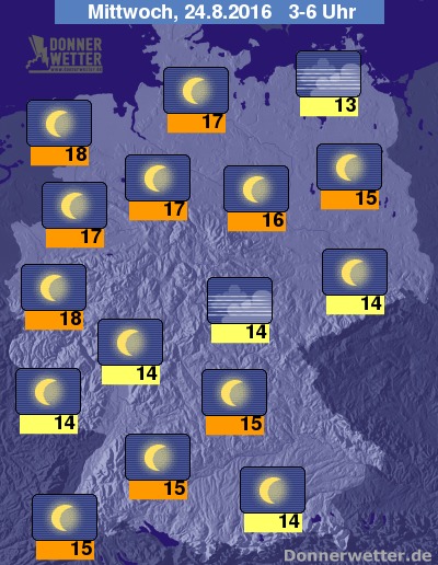 In der Nacht zum Mittwoch sind im Norden anfangs hier und da noch lockere Wolken unterwegs, ansonsten bleibt es über dem Bundesgebiet jedoch nur sternenklar und dazu trocken. Die Temperatur sinkt auf 18 Grad in Köln und etwa 13 Grad an der Müritz.