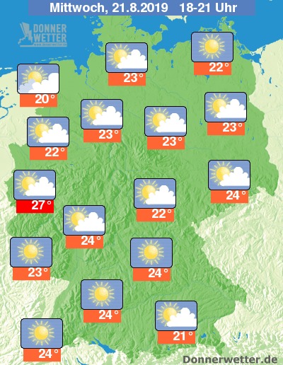 Die Temperaturen sinken im Abendverlauf auf Werte um 16 bis 22 Grad.