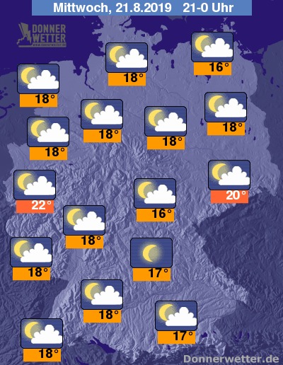 Am späten Abend nimmt die Bewölkung dann auch im Süden zu, es ist dann meist locker bewölkt. Schauer sind am Abend nicht zu erwarten.