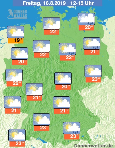 Am frühen Nachmittag treten in Teilen Brandenburgs, sowie Mecklenburg-Vorpommerns noch örtliche Schauer auf, auch im südöstlichen Bayern kann es noch nass werden. Sonst bleibt es bei einer freundlichen Mischung aus Sonne und durchziehenden Wolkenfeldern meist trocken.