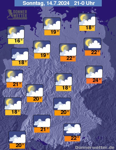 In der Nacht zum Montag zeigt sich der Himmel meist wechselnd oder gering bewölkt und es bleibt meist trocken. Ein geringes Schauerrisiko besteht im Alpenvorland.