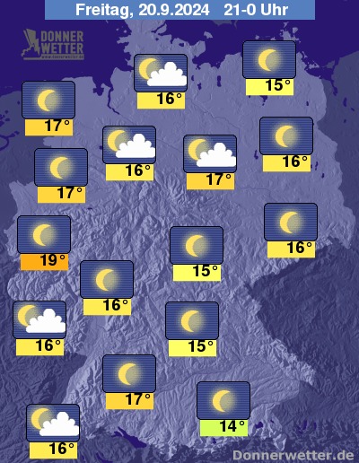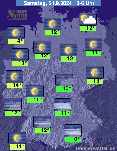 In der Nacht zum Samstag ist sternenklar oder nur gering bewölkt und es bleibt niederschlagsfrei. Vornehmlich in der Südhälfte kann sich in den frühen Morgenstunden Nebel oder Hochnebel bilden.