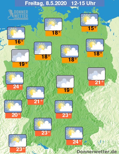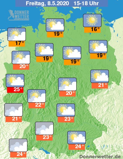 Die Temperaturen bewegen sich im Norden und Osten zwischen 15 und 21 Grad, im Küstenumfeld von Nord- und Ostsee bleibt es dabei am kühlsten. Im Süden und Westen werden jedoch angenehm warme 21 bis 24 Grad erreicht.