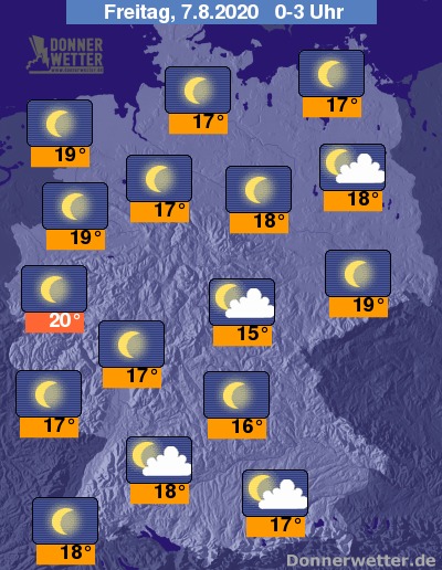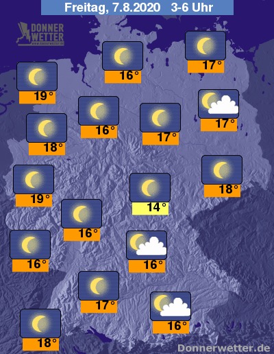 Die Temperaturen erreichen in den Frühstunden Werte um 15 Grad im Saarland und um 22 Grad in Dresden.