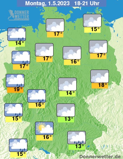 Heute Abend bringen dichte Wolken vor allem den westlichen Landesteilen und dem Alpenvorland vielerorts Schauer. Im übrigen Land ist es meist stark bis dicht, hier und da auch etwas aufgelockert bewölkt, dazu bleibt es weitgehend trocken. Die Temperatur liegt bei 13 Grad in Nürnberg und bis 19 Grad in Köln.