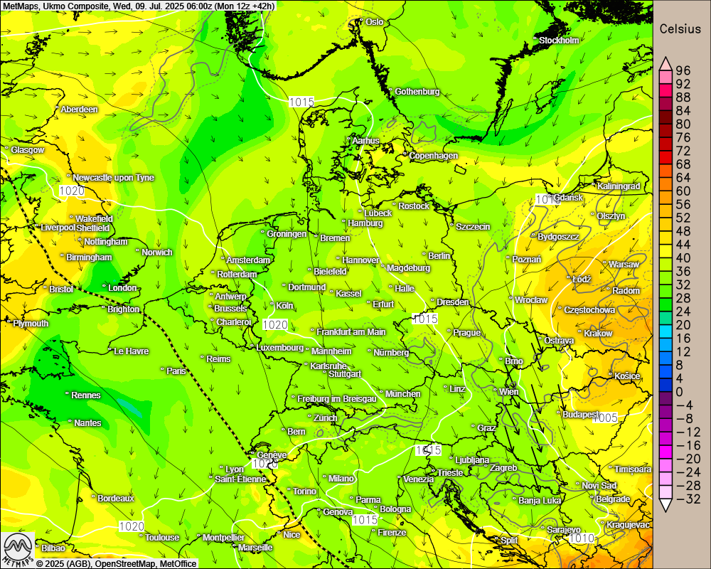 Die Luftdruckkarte nach UKMO für Donnerstagfrüh (06:00 Uhr):