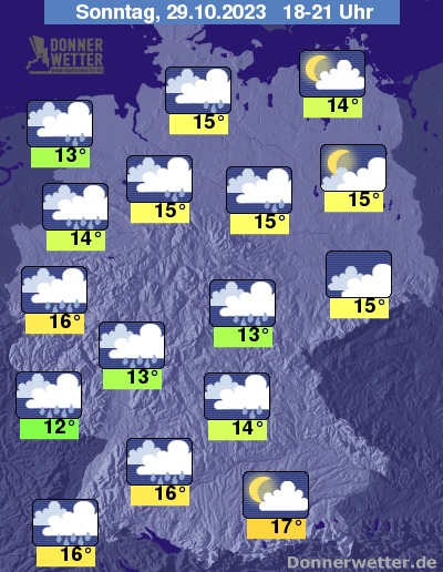 In der Nacht zum Montag zieht es sich im Westen Deutschlands immer weiter zu und es setzt im Verlauf Regen ein. Im großen Rest des Landes zeigt sich der Himmel verbreitet locker bis aufgelockert, teils auch stark bewölkt, dazu bleibt es weitgehend trocken. Die Temperatur sinkt auf 11 Grad in Freiburg und etwa 8 Gard in Erfurt. An den Küsten weht ein oft stürmischer Wind.