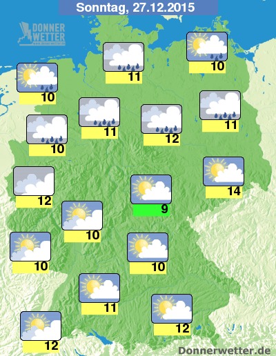Heute halten sich im Norden bereits zu Tagesbeginn dichte Wolken und es zieht zeitweiliger Regen durch. Im Süden ist es dagegen verbreitet heiter oder mal wechselnd bewölkt, über der breiten Landesmitte meist aufgelockert, teils aber auch stark bewölkt, jedoch trocken. Die Temperatur steigt auf 9 Grad in Mittelfranken und bis 14 Grad in Dresden. Im Norden weht zunächst noch teils starker Wind mit stürmischen Böen, er lässt im Nachmittagsverlauf jedoch nach.