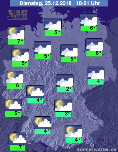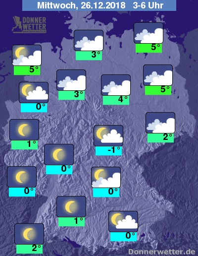 Während der zweiten Nachthälfte leuchten im Süden und Südwesten häufig Mond und Sterne, später können sich regionale Nebelfelder bilden. Im Nordosten bleibt es meistens bewölkt.