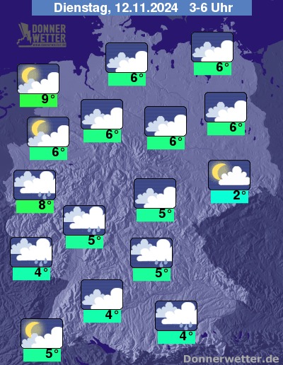 Die Temperaturen gehen in den Morgenstunden zurück auf Werte um 9 bis 2 Grad.
