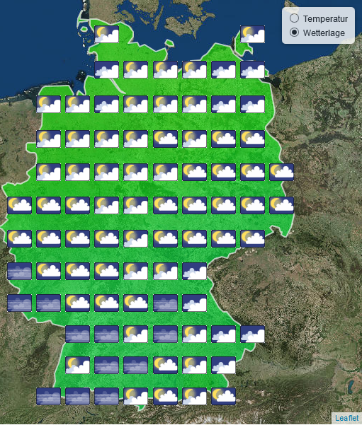 Dies bleibt bis morgen stabil, im Südwesten wird es neblig. Am Abend ist es dann im Norden noch deutlich kälter als im Süden, das zeigen 14 Grad in Flensburg und 19 in München. Die kälteste Orte Deutschlands heißen heute Nacht Bayreuth und Berchtesgaden, wo die Temperaturen Tiefstwerte von 6 bis 7 Grad annehmen. Am wärmsten ist es dagegen mit konstanten 12 Grad auf Rügen.