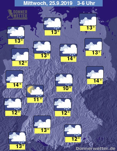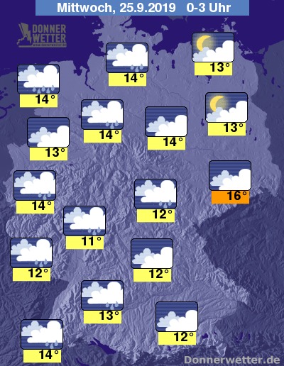 In der Nacht zeigt sich der Himmel über weiten Landesteilen bedeckt, entlang der Oder ist es in der ersten Nachthälfte auch noch teils aufgelockert bewölkt. Verbreitet muss in den Nachtstunden mit Schauern gerechnet werden, nur in der Osthälfte bleibt es überwiegend trocken.