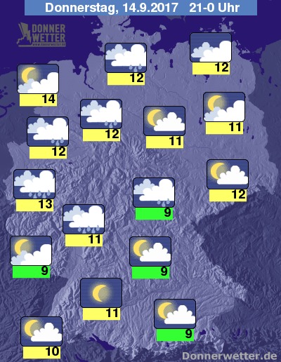 Temperaturen am Abend um 10 bis 16 Grad C.