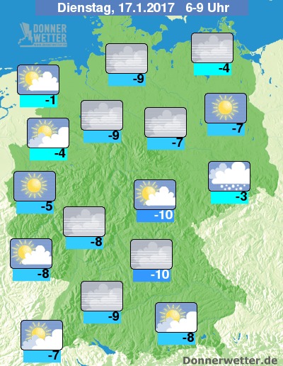 Die Temperaturen erreichen Tiefstwerte um -1 bis -9 Grad C.