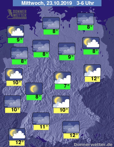 Die Wochenmitte startet vielerorts mit Nebelfelder, die sich in den Früh- und Vormittagsstunden auch noch hartnäckiger halten können. Im Westen und Nordwesten sowie im Vogtland und dem Fichtelgebirge wechseln sich Sonne und Wolken am Morgen ab. Schauer sind nicht zu erwarten.