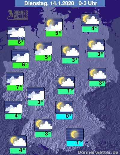 In der Nacht zeigt sich der Himmel zunächst im Westen überwiegend bedeckt, in den frühen Morgenstunden nimmt die Bewölkung dann auch im Norden des Landes immer weiter zu. Im Nordwesten muss dabei mit einzelnen Schauern gerechnet werden. Der Wind nimmt in der Westhälfte weiter zu, zeitweise sind dann Sturmböen möglich. Im Süden und Osten verlaufen die kommenden Stunden bei unter Sternen oder nur lockerer Bewölkung dabei deutlich entspannter.