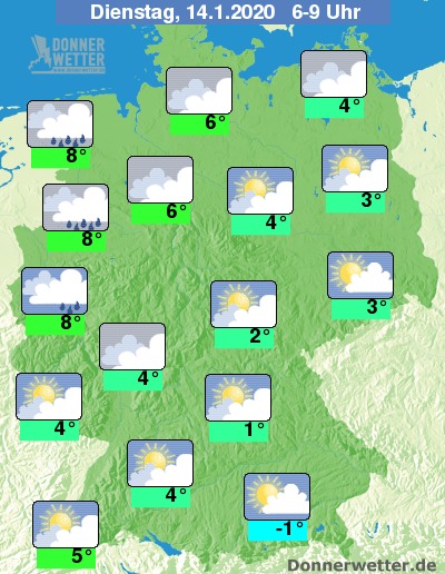 Die Temperaturen liegen weiterhin bei Werten um -1 bis 8 Grad.